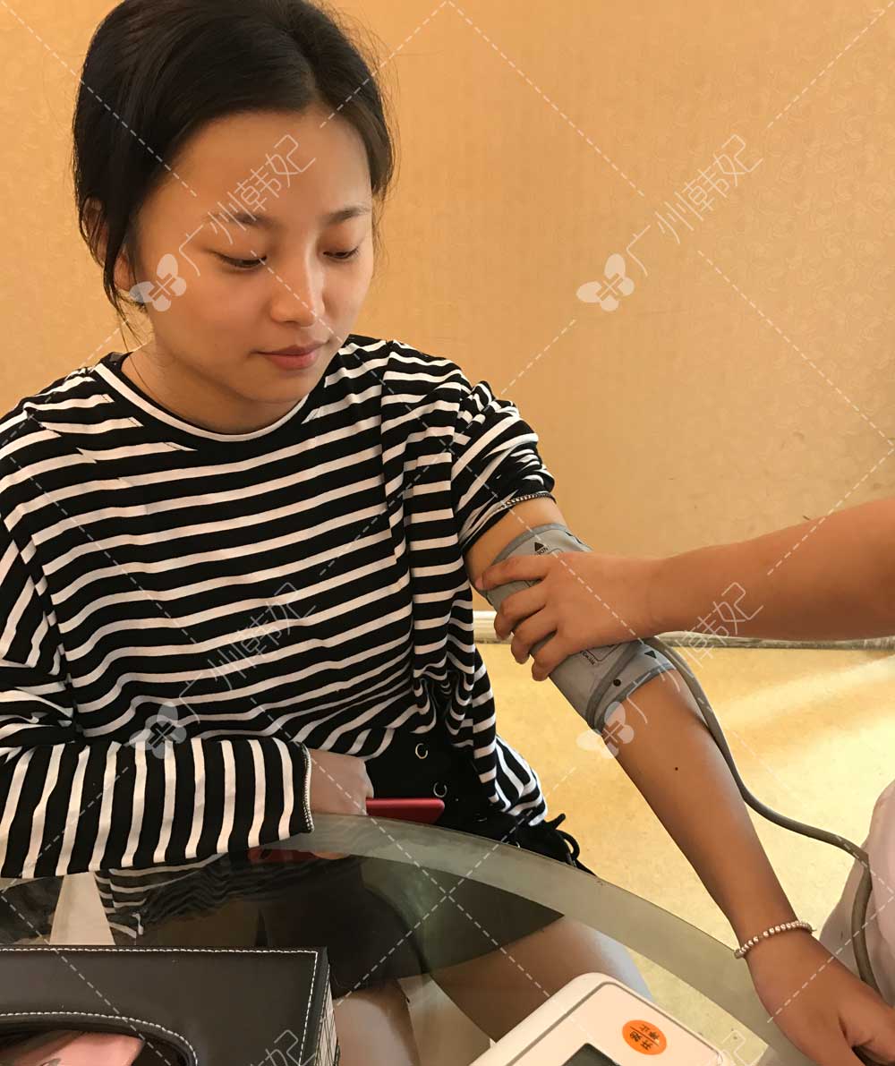 After well known about the surgery scheme, Li Simeng decided to do double eyelid surgery, before surgery, nurse help her draw blood and measure blood pressure
