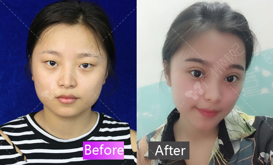 Li Simeng feel trouble of her dissymmetry eyes, one is single eyelid, another is double eyelid, and the eyes look swelling and glazed, it has bad effect on appearence, the dozed eyes look older than her actual eyes. so she went to Hanfei changing her dissymmetry eyes